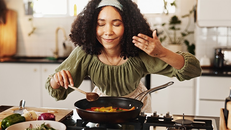 Disfruta de la estimulación de los sonidos, olores, colores, texturas y sabores de la comida.