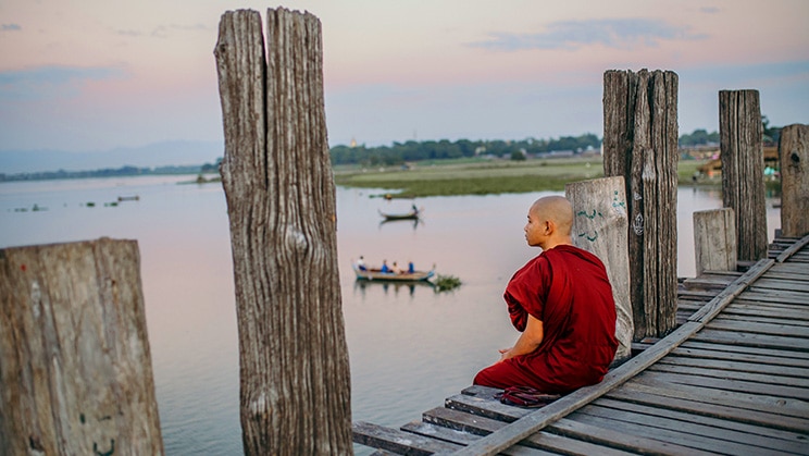 ―Monje joven meditando junto a un lago. CC0 1.0. Imagen de PxHere―