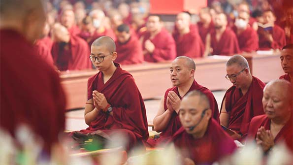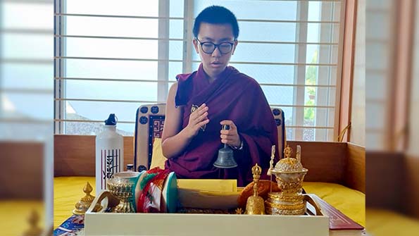 —Yetsunma Kunga Trinley Palter participa en las pujas de Vajrayogini Drubchoe, presididas por S. S. el 41.º Sakya Trizin, Gongma Trichen Rinpoché en Sakya Center, Dehradun (India), el 11 de febrero de 2022. Imagen de Sakya Center Education Department—